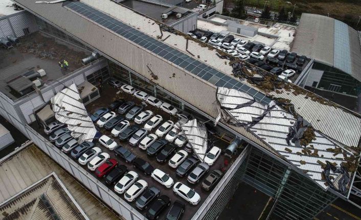 İstanbul’da şiddetli lodosun verdiği zarar drone görüntülerine yansıdı. Çatıdan düşen parçaları otomobillere büyük hasar verdiği görüldü.