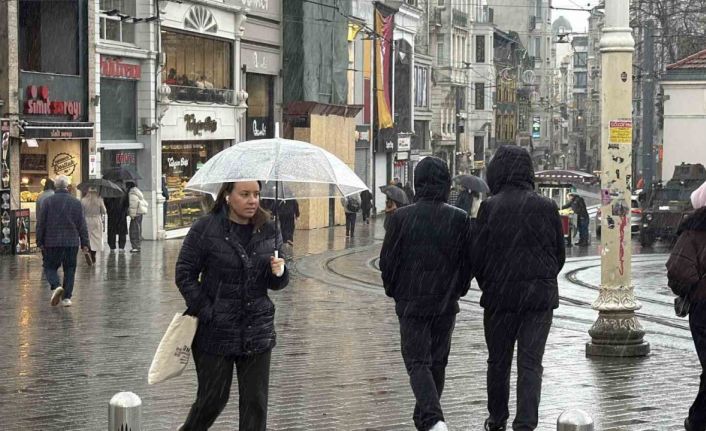 İstanbul’da soğuk hava ve yağmur etkili olmaya devam ediyor. Özellikle Taksim Meydanı ve İstiklal Caddesi’nde belirli aralıklarla etkisini gösteren yağmur ve soğuk havanın etkisiyle vatandaşların şemsiyelerle tedbir aldığı görülürken turistlerin ise bir kısmı otobüs duraklarına sığındı.