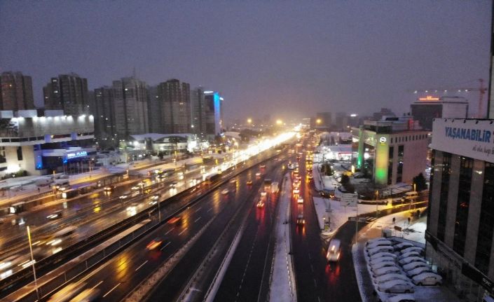 Meteoroloji Genel Müdürlüğü’nün uyarılarının ardından hafta sonu sonrası İstanbul’da kar yağışı bugün de devam etti. Vatandaşlar güne beyaz örtüyle uyandı. Kısıtlamanın ardından haftanın ilk iş gününde kar yağarken İstanbul trafiği havadan görüntülendi.İstanbul’da trafik böyle görüntülendi