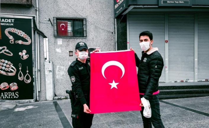 İstanbul Emniyet Müdürlüğüne bağlı ekipler, 39 ilçede dolaşarak 100 bin bayrağı vatandaşlara dağıttı.
