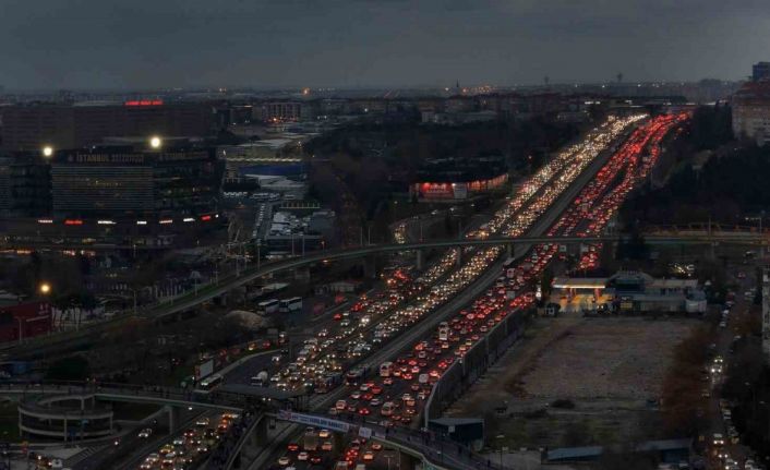 İstanbul’da yarıyıl tatilinin başlaması ve yağışın birleşmesiyle trafik yoğunluğu akşam saatlerinde yüzde 90 seviyelerine ulaştı. Özellikle Avrupa Yakası’nda durma noktasına gelen trafik, havadan görüntülendi.