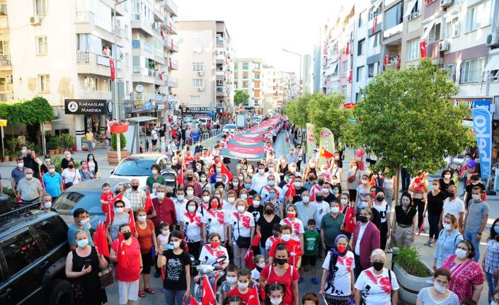 190 metre uzunluğundaki Atatürk portresini ve Türk bayrağını taşıyan kortej, marşlar eşliğinde Ata ve Sakarya Caddeleri’ne yürüdü. Yürüyüş esnasında İstiklal Marşını ve Atatürk’ün Gençliğe Hitabesini okuyan gençlere, balkonlarındaki vatandaşlar da sevgi gösterilerinde bulunarak çiçekler attı.
