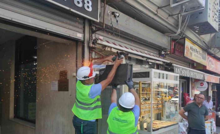 İzmir’in Konak ilçesi Basmane semtindeki çok sayıda Arapça tabela zabıta ekiplerinin operasyonuyla tek tek indirildi.