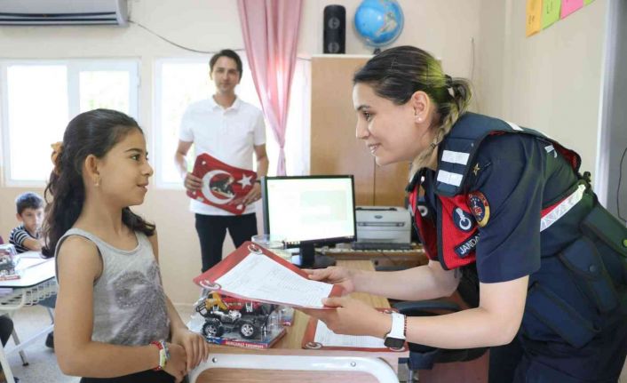 İzmir’de yaz tatili öncesi karne sevinci yaşayan öğrencilere jandarma ekipleri de ortak oldu.