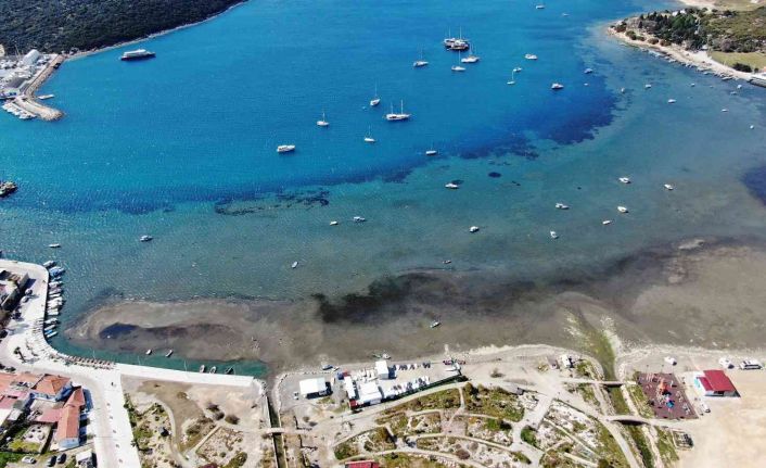 Denizin yer yer 30 metre çekildiği Sığacık sahili ise havadan dronla görüntülendi. Görüntülerde denizin çekilmesiyle oluşan adacıklar görüntülere yansıdı.