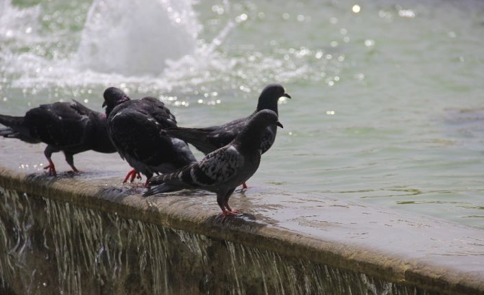 Meteorolojiden alınan verilere göre İzmir’de hava sıcaklığı rekor seviyede. Mayıs ayının ortasında ağustos ayını aratmayan sıcaklık, önümüzdeki haftanın ilk günlerinde de bölgeyi etkilemeyi sürdürecek. Sıcak havanın etkisiyle Konak Meydanı’nda bulunan güvercinler, havuza girip su içerek serinlemeye çalıştı.