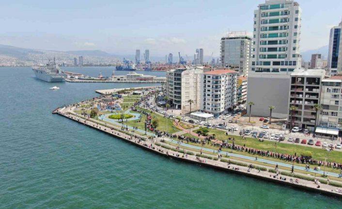 Dünyanın ilk SİHA gemisi, Türkiye’nin de en büyük askeri gemisi TCG Anadolu, İzmirli vatandaşlar tarafından yoğun ilgiyle karşılanırken, hafta sonu ve güzel havayı değerlendirmek isteyen vatandaşlar gemiyi ziyaret etmek için yaklaşık 1.5 kilometrelik kuyruk oluşturdu.