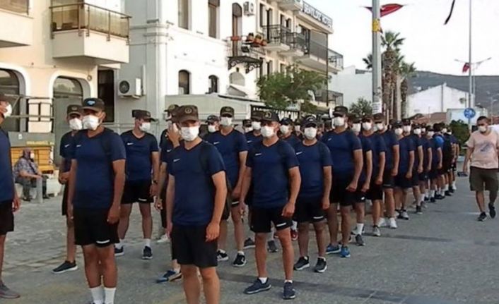 Limana yanaşılmasından sonra teknelerden inen ve birliklerine gitmek üzere tabur halinde yürüyüşe geçen öğrencilere alkışlı tezahüratlar yol güzergahı boyunca devam etti. Öğrenciler birliklerine sahildeki ve evlerinin balkonlarındaki vatandaşların sevgi gösterileriyle uğurlandı.