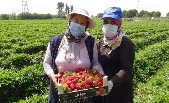 Mersin’in Silifke İlçesinde kadınlar 1 Mayıs Emek ve Dayanışma gününde tarlada çilek topladı.