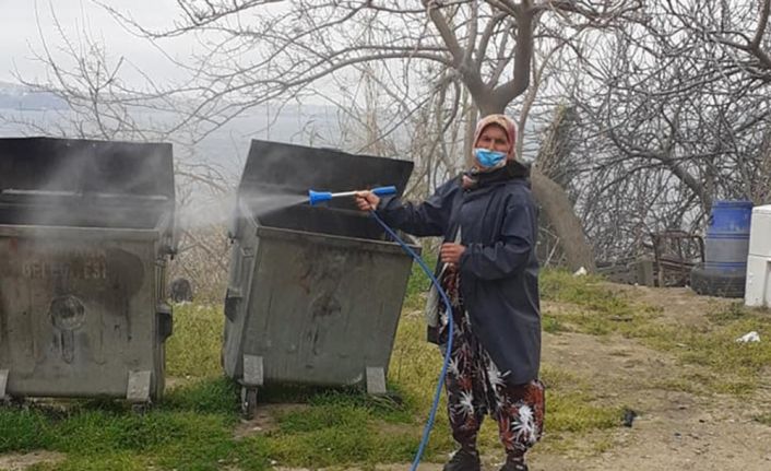 Erdek ilçe merkezi ile bağlı kırsal mahallelerde korona virüs ile mücadele kapsamında ilaçlama ve dezenfekte çalışmaları tüm hızıyla sürüyor. Erdek ilçe merkezinde 5, kırsalda 23 mahallesi bulunan Erdek’in denize kıyısı bulunan Karşıyaka Mahallesi’nin kadın muhtarı Ayşe Ertürk, mahallesini korona virüsten korumak amacıyla hummalı bir şekilde çalışıyor. 2 bin 200 kişinin yaşadığı Karşıyaka Mahallesi’nin kadın muhtarı Ayşe Ertürk, traktörün römorkuna monte ettiği ilaçlama pompasıyla tüm sokakları dolaşarak ilaçlıyor. Korona virüsü belasına karşı ilaçlama çalışmaları yürüten büyükşehir ve ilçe belediye ekiplerine destek vermek üzere kollarını sıvadığını söyleyen Ertürk, bu sorumluluktan asla kaçamayacağının altını çizdi. Yaşamlarını sürdüren mahalle halkının sağlığına kendisinin de önem verdiğine vurgu yapan Ertürk, Balıkesir Büyükşehir Belediyesi ile Erdek Belediyesi’nin kendisine gönderdiği dezenfektede kullanılacak ilaçlarla başta sokaklar olmak üzere, sağlık merkezi hizmet binası, çocuk oyun alanları, çöp konteynerleri ve umuma açık tuvaletleri ilaçladığını bildirdi.