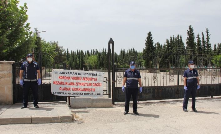 Adıyaman İl Hıfzıssıhha Kurulu, korona virüs (Covid-19) tedbirleri kapsamında mezarlık ziyaretini yasakladı. Kadir Gecesi ve Ramazan Bayramı süresince mezarlıklar ziyaret edilemeyecek. Mezarlık girişine yasak ile ilgili afiş asılırken, zabıta ekipleri mezarlık girişinde bekliyor.
