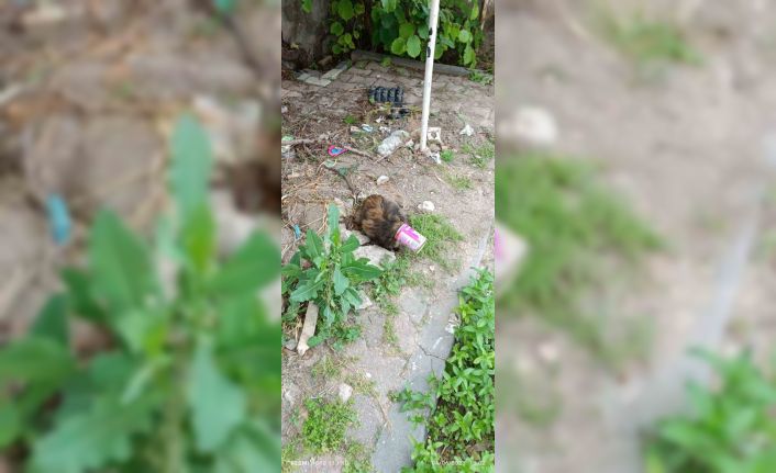 Kafası konserve kutusuna sıkışan kedi, Kayseri Büyükşehir Belediyesi itfaiye ekipleri tarafından kurtarıldı.