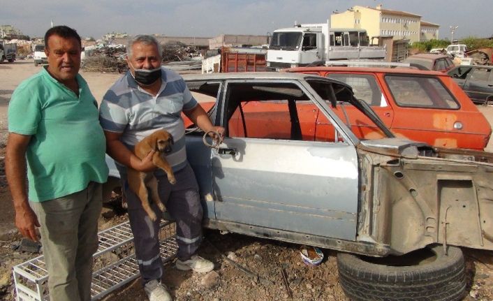 Hasan Göküş ve Mehmet Başara, “Hurda aracın altında yavru köpeğimizin sesini duyduk. Aracın altına baktığımızda yavru köpeği gördük. Hurda aracı kaldırdık. Anahtar yardımı ile vidaları sökerek yavru köpeği kurtardık” dedi.