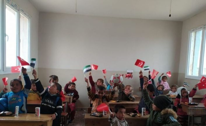 Barış Pınarı Bölgesi’nde görev yapan Türk askeri, çocuklara ve bölge halkına gıda ve kırtasiye yardımında bulundu.