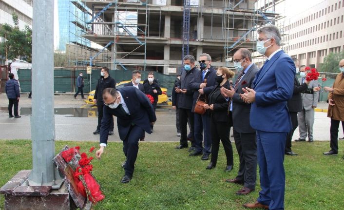 İzmir Cumhuriyet Başsavcısı Kamil Erkut Güre, Adalet Komisyonu üyeleri ve başsavcı vekilleri, 5 Ocak 2017’de meydana gelen hain terör saldırısında şehit düşen polis memuru Fethi Sekin’in şehit düştüğü alana ve heykeline karanfil bıraktı.
