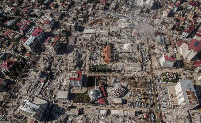 Kahramanmaraş’ta meydana gelen deprem nedeniyle şehir merkezindeki binaların büyük bir kısmı yıkıldı, geri kalanı ise hasar gördü. Şehir merkezindeki büyük yıkım havadan görüntülendi.