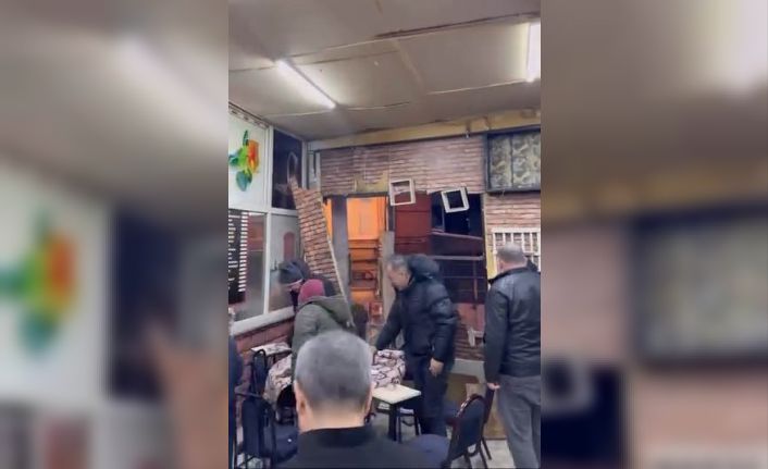 Yaşanan olay sırasında çevrede kısa süreli panik yaşanırken, o anlar kahvehanede bulunan vatandaşlar tarafından cep telefonu kamerasıyla kaydedildi. Görüntülerde, duvar parçalarının döküldüğü ve içeride bulunanların soğukkanlılığını koruduğu görüldü.