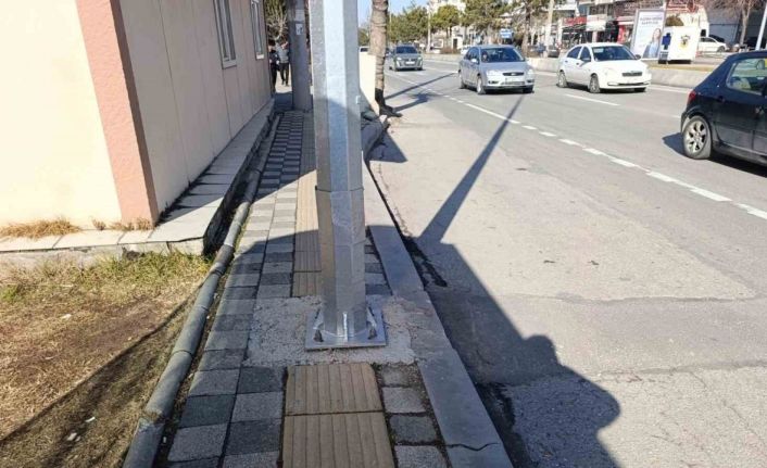Kaldırımdaki engelli yolu üzerine direk diktiler