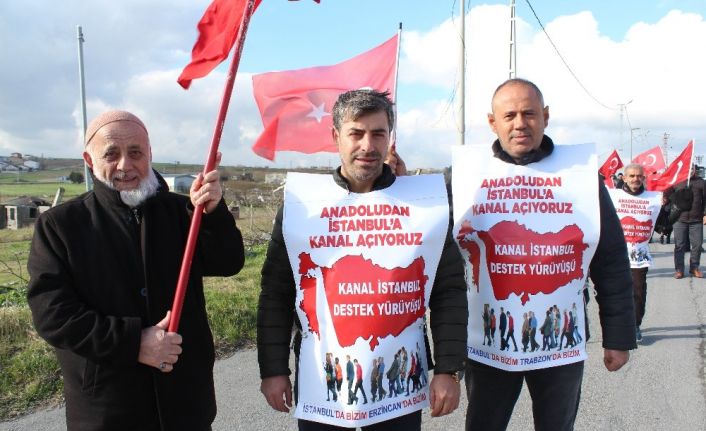 Kanal İstanbul projesine destek vermek için “81 ilden 81 kişiyle Anadolu’dan İstanbul’a kanal açmaya geldik” sloganıyla yürüyen vatandaşlar, projeye destek vermek için birikimlerini devlet hazinesine bağışlayacaklarını dile getirdiler.