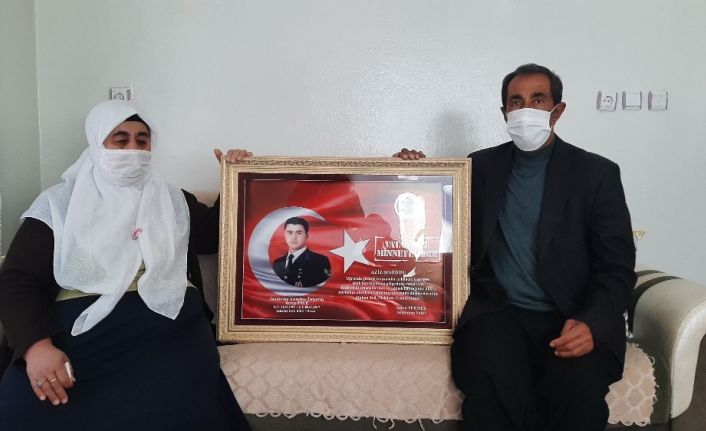 Şehidin ailesini Köseceli Belediye Başkanı Kerim Durgut, Aile, Çalışma ve Sosyal Politikalar İlçe Müdürü Mustafa Orhan ve jandarma görevlileri ziyaret etti.