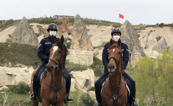Türkiye’nin önemli turizm merkezlerinden Kapadokya bölgesinde korona virüs ile mücadele kapsamında bölgede bulunan müze ve ören yerleri ziyaretçilere kapatılırken vadilerde ise yürüyüşlerin yapılmaması için Nevşehir’de bulunan Jandarma At ve Köpek Eğitim Merkezinde görevli atlı birlikler denetimleri sağlıyor.