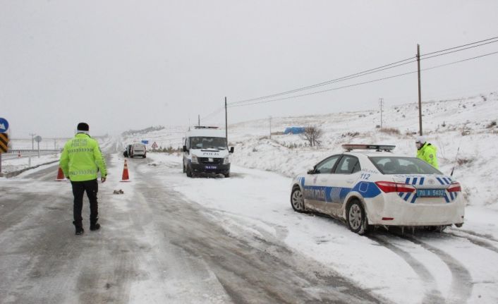Karaman’ı Mersin’e bağlayan karayolunda yoğun kar yağışı ve buzlanma nedeniyle ulaşım güçlükle sağlanıyor. Karaman çıkışında büyük araçlar bekletilirken, küçük araçların zincir takarak yoluna devam etmesine izin veriliyor.