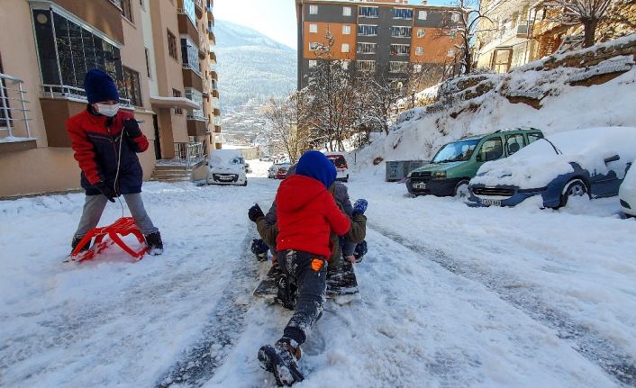 Kent merkezinde dün gece 21 santimetre olarak gerçekleşen yağışın ardından güneşin de yüzünü göstermesiyle birlikte günlerdir kar yağışı bekleyen çocuklar adeta evlerden dışarıya akın etti. Evlerinin önünde kardan adamlar yapan, kartopu oynayan çocuklara kızaklarıyla dik rampalarda kayan çocukların da eşlik etmesiyle ortaya renkli görüntüler çıktı. Çok kar olmamasına rağmen eğlendiklerini kaydeden çocuklar çevrimiçi dersler biter bitmez kendilerini kapıya attıklarını, hatta ders aralarında da kapıya çıkarak karla oynadıklarını belirterek “Kaç gündür bekliyorduk, ancak yağdı” sözleriyle mutluluklarını ifade etti.