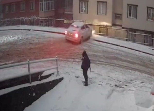 Trabzon şehir merkezinde dün akşam saatlerinde etkili olan kar yağışı beraberinde kazaları da getirdi. Karlı yoldan aşağıya inerken frene basan otomobil sürücüsü kayarak bir sitenin bahçesine düştü. O anlar bir iş yerinin güvenlik kameralarına yansıdı.