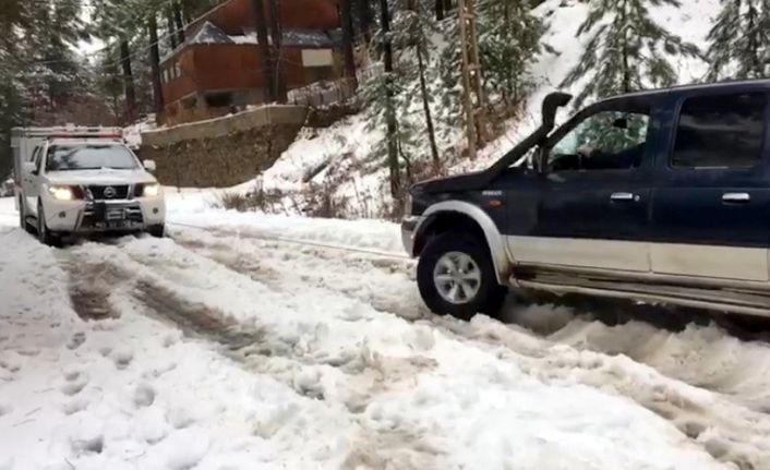 Osmaniye’nin Zorkun Yaylasında yoğun kar yağışı nedeniyle mahsur kalan araçlar AFAD ekipleri tarafından kurtarıldı.
