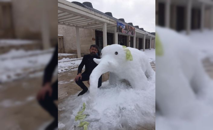 Kırşehir Ahi Çarşısında iş yeri olan esnaf kar yağışı ile birlikte kendini Ahi Külliyesi bahçesine atarak farklılık oluşturmak için kardan adam yerine kardan fil yaptı.