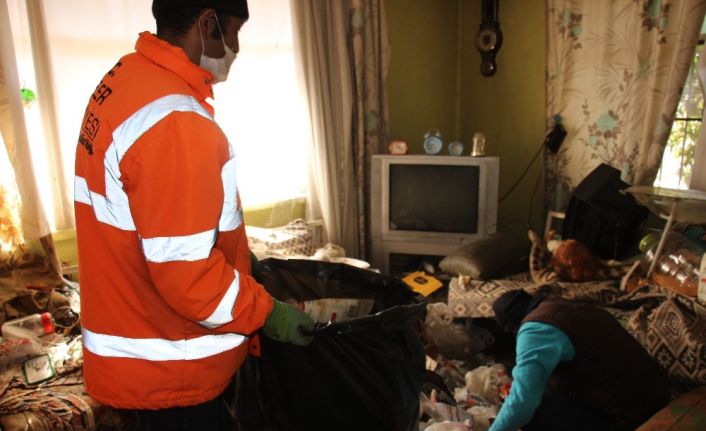 Aydın’ın Efeler ilçesinde iki katlı apartmanın alt katında yaşayan kız kardeşinin evinden gelen kötü kokuya daha fazla dayanamayan bir vatandaş, durumu belediye ekiplerine bildirdi. Eve gelen ekipler, kadının çöp evde 5 senede biriktirdiği 2 kamyon çöpü 3 saatte temizledi.