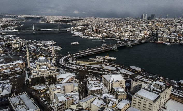 İstanbul’da cumartesi gününden bu yana devam eden kar yağışı bugün sabah saatlerinde etkisini artırdı. Tarihi yarımada beyaza bürünürken, Galata Kulesi, tarihi camiler, Eminönü, Galata Köprüsü ve tarihi binalar kartpostallık görüntüler oluşturdu.