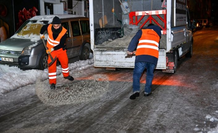 Karla mücadele ekiplerinin çalışmaları gece boyunca sürdü