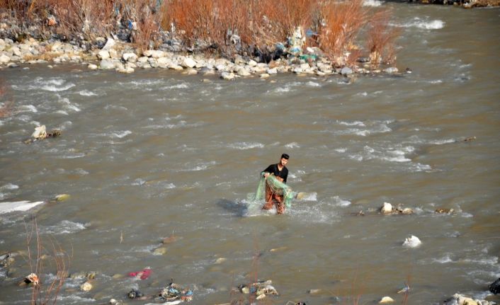 Şirnak’in Beytüşşebap İlçesinde Karların Erimesiyle Sular Yükselince Balıkçılar Derelere Akın Etti