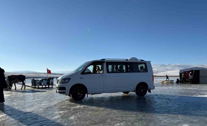 Kars’ta turizm sektörüne uzun yıllardan beri hizmet eden turizm şirketi sahibi Şentürk Güç, turistlerle birlikte geldiği Arpaçay’a bağlı Taşbaşı köyünde Çıldır Gölü üzerine bin 979 kilo ağırlığındaki aracıyla çıktı. Yaklaşık 50 metre buz üzerinde tur atan Güç, o anda atlı kızak turları için göl üzerinde bulunan vatandaşların yürüklerini ağızlarına getirdi.