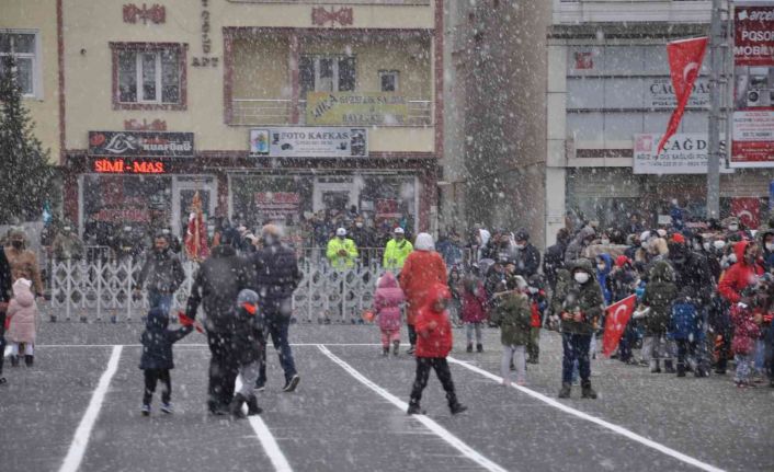 Kars’ta lapa lapa kar yağışı altında Cumhuriyet coşkusu