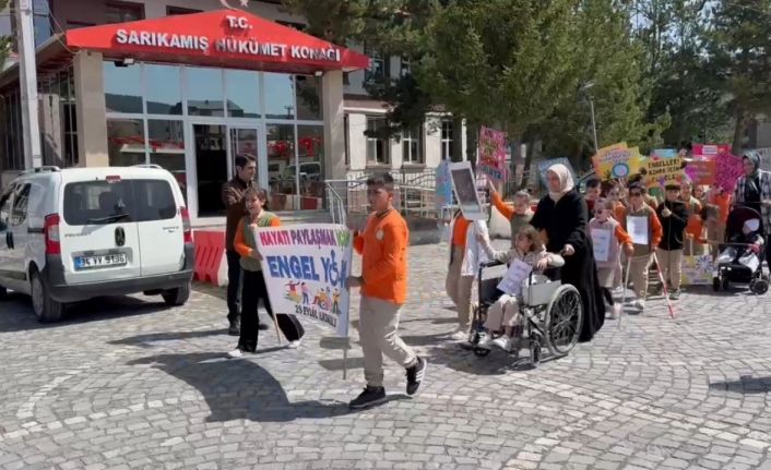 Sarıkamış Kaymakamlığı önünde toplanan 29 Ekim İlkokulu 3. Sınıf öğretmenleri ve öğrencileri, "Hiçbir şey yaşamaya engel değil" ve "Ayrı renklerde aynı bahçenin çiçekleriyiz" gibi mesajlar yazılı pankartlar, yürüyerek engelli bireylere destek verdi. Öğrencilerin yürüyüşüne Kaymakam Enis Aslantatar’da katıldı.