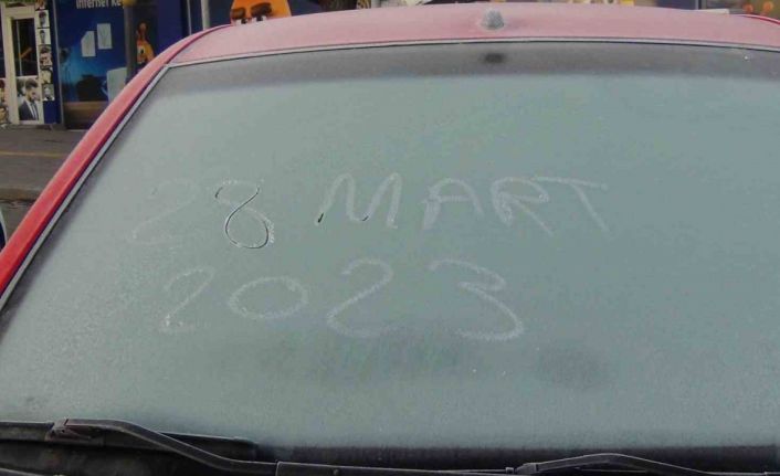 Kars’ta yağmurlu hava yerini soğuk havaya bıraktı, soğuk havanın etkili olduğu ilde araçların camları donarken, yeşil alanlar da ise kırağı oluştu.
