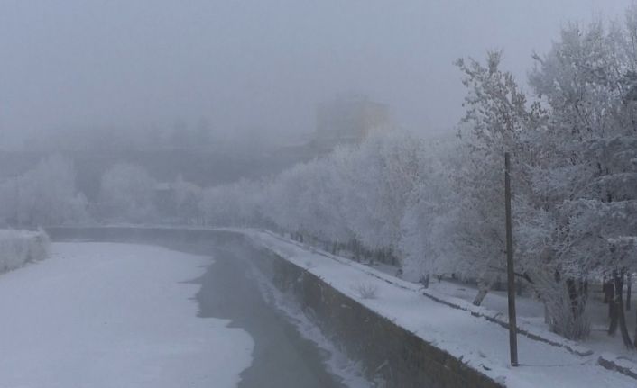 Hava sıcaklığının gece eksi 23 derece ölçüldüğü kentte, sabah saatlerinde termometreler eksi 16’yı gösterdi. Sis ve kırağının etkili olduğu beyaza bürünen ağaçlar kartpostallık görüntüler ortaya çıkardı.