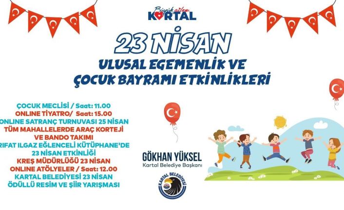 Covid-19 pandemisi nedeni ile bayram coşkusunu sokaklarda yaşayamayacak olan çocuklar için birbirinden özel etkinlikleri evlere taşıyacak olan Kartal Belediyesi, çocuklara armağan edilmiş bu kutlu günde ne kadar özel ve değerli olduklarını onlara hissettirmek için şiir okuma ve resim yarışmasından satranç turnuvasına, tiyatro oyunundan çeşitli sokak etkinliklerine ve atölyelere kadar farklı etkinlikler organize etti.