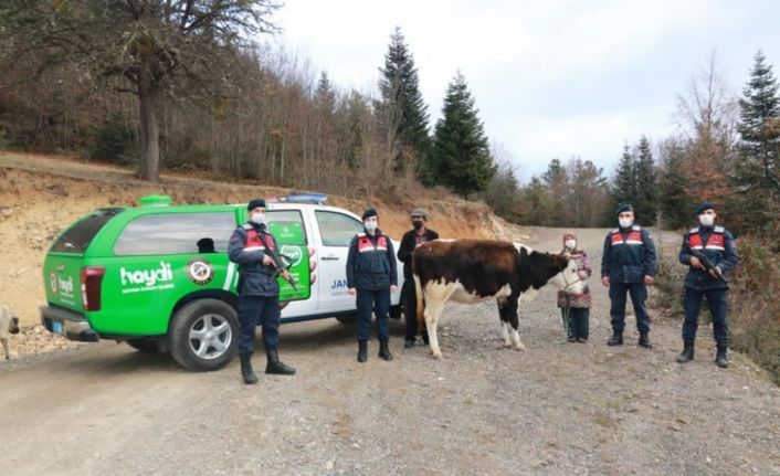 Edinilen bilgiye göre, Ağlı ilçesinde Kayabaşı Mahallesinde ikamet eden Ü.Ş, yol üzerinde bulunan jandarma devriyesinin yanına gelerek ‘ormanda hayvan otlatırken ineğinin kayadan düştüğünü’ belirterek jandarma ekiplerinden yardım istedi. Kastamonu İl Jandarma Komutanlığı Çevre, Doğa ve Hayvanları Koruma Timi, bölgeye çağrılarak devriye ile birlikte yaralanan hayvan bulunduğu bölgeden kurtarıldı.