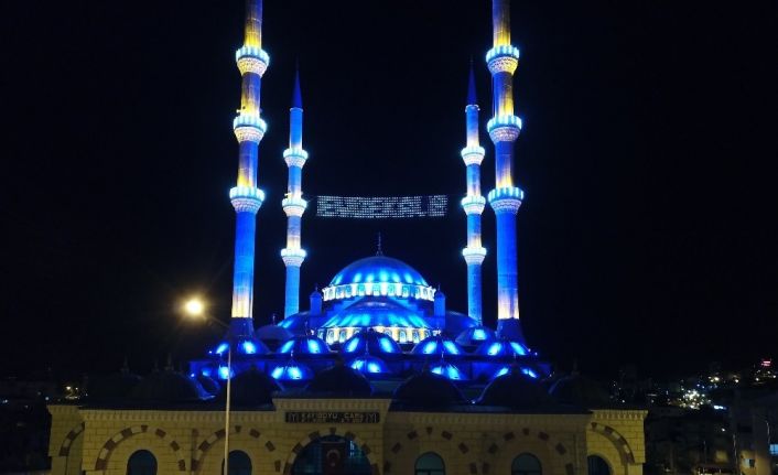 Bilecik’in en büyük camisi olan Kayı Boyu Camii mahyasına "Evde Kal Bilecik" yazıldı.