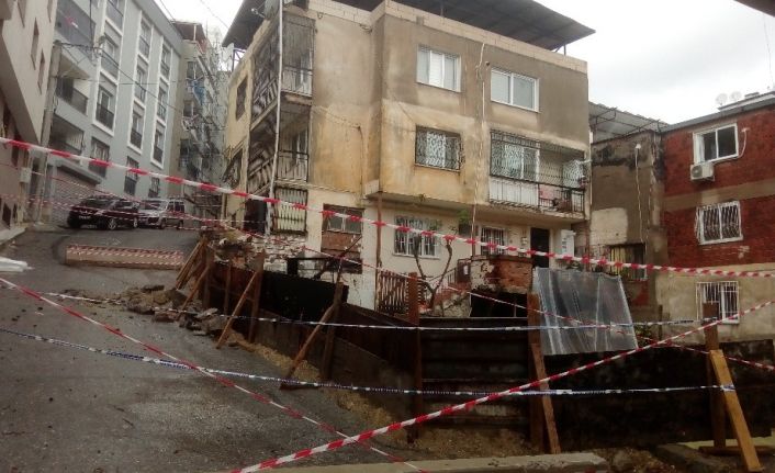 Olay, İzmir’in Karabağlar ilçesine bağlı Sevgi Mahallesi 4624 Sokak’ta meydana geldi. Bir inşaatın temel kazısı, şiddetli yağış nedeniyle su dolarken, inşaatın önündeki yolda çökme meydana geldi. Bölgede inceleme yapan belediyesi ekipleri, inşaatın yanındaki 3 katlı binada kayma riski bulunduğunu tespit etti. Bina, boşaltılarak mühürlendi ve sokak girişine bariyerler konuldu. Vidanjörlerle temeldeki suyun tahliyesinin ardından bina ve yolla ilgili çalışma yürütülecek. Aynı sokakta yıkılma tehlikesi bulunan elektrik direği de başka bir noktaya taşındı. Ayrıca sağanak nedeniyle Limontepe 9700 Sokak’ta da bir istinat duvarında çökme yaşandı.Kayma riski bulunan binaya tahliye