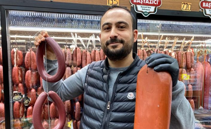 Kayseri’de pastırmacılık işi yapan Yasin Güzel, pastırmanın kilosunun pahalandığını ve o nedenle pastırma hırsızlığına önlem olarak, dükkanların önüne maket pastırma astıklarını söyledi. Güzel; "Müşteriler gerçek zannediyorlar ve dokunuyorlar. Isırmaya çalışanlar dahi oluyor. Ancak onun maket olduğunu anlayınca gülüyorlar” dedi.