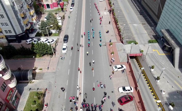 Kayseri Valisi Şehmus Günaydın, Garnizon Komutanı Tuğgeneral Aziz Adalı, Kayseri Büyükşehir Belediye Başkanı Memduh Büyükkılıç ve İl Emniyet Müdürü Kamil Karabörk, sokağa çıkma kısıtlamasının uygulandığı 23 Nisan Ulusal Egemenlik ve Çocuk Bayramı’nda kent merkezindeki caddeleri gezerek çocukların bayramını kutladı. Spor AŞ tarafından düzenlenen etkinlikte, bando takımı ve dans ekibi de gösterileri ile çocukların yanında oldu. Balkonlarından ellerindeki Türk bayraklarını sallayarak etkinliğe katılan çocuklar, bayramlarını coşkuyla kutladı.