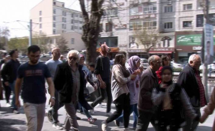 Kayseri’nin en işlek caddelerinde bir şahsın, at kafası maskesiyle dolaşması vatandaşları şaşırttı.
