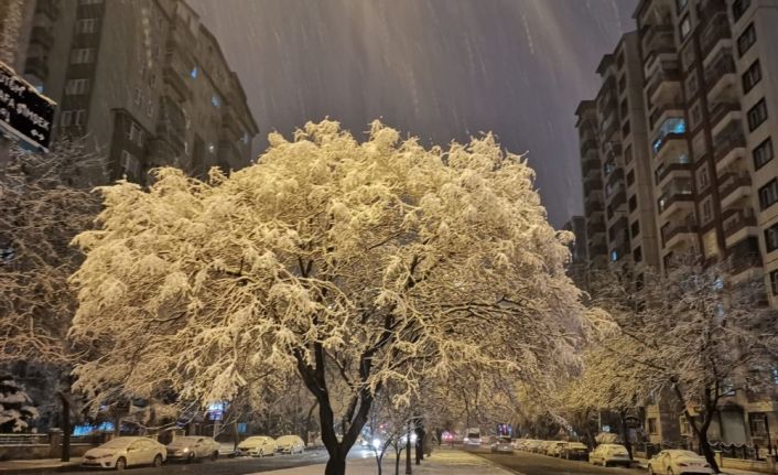 Kayseri’ye gün boyu etkili olan şiddetli rüzgarın ardından başlayan kar yağışı kenti beyaza bürüdü.