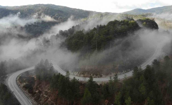 Balıkesir ile Çanakkale arasında uzanan Kazdağları, kış mevsiminin gelişiyle birlikte sis perdesine bürünerek ziyaretçilerine adeta bir masal diyar sunuyor. Doğanın bu benzersiz manzarası, dron kamerası ile görüntülendi.