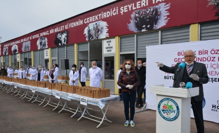 Arıtma tesislerimizde yeni bir tesis kurduk. Musluklarla bir anda 30 kişilik dolum yapabilecek şekilde sistemi kurduk. Arkadaşlarımızı bir araya getirdik. Açık söylüyorum, Ereğli’de kimse mağdur olmayacak. Kimse aç kalmayacak. Kimse maskesiz kalmayacak. Bu çantalara sağlık seti diyoruz. 45 bin daire var Ereğli’de. Her çantanın içinde her daire için 4 maske, 1 şişe el dezenfektanı, 2 el sabunu, teknik bilgilerle donatılmış metnimiz yer alıyor” dedi.