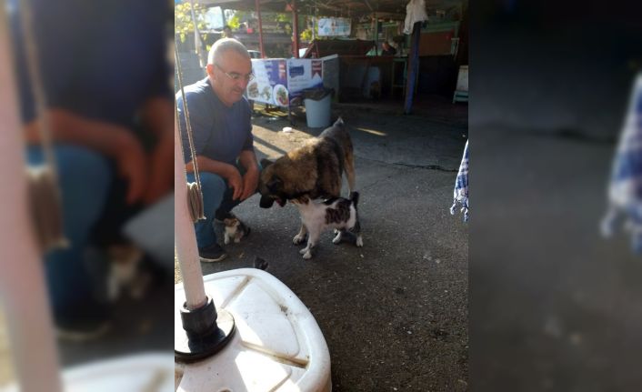 Zonguldak Merkez’de bir balık restoranına her gün düzenli olarak gelen kediler ve köpek, balıkçıların verdiği balıkları yiyerek karınlarını doyuruyor. Köpek ve kedilerin yemek sırasında birbirleri ile uyum içinde olması ve sevgisi gözlerden kaçmıyor. Köpek, kedileri diğer köpeklerden de koruyor. 40 yıldır balıkçılık yapan Ali Bora Amasralı, ’’Anne kedi, yavrularını ve Memati ismini verdiğimiz köpeği her gün düzenli olarak balıkla besliyoruz. Hayvanları sevmeyen insanları sevmez. Bizim bu işletmede en önem verdiğimiz şey de dostluktur. En büyük örneği de köpek ve kediler. Memati ismini verdiğimiz köpek, anne kedi ve yavrularını diğer köpeklerden koruyarak bazen onlar için bile yemeği paylaşıyor. Bu da bunun en büyük örneğidir. Müşterilerimiz bile köpek ve kedilerin birbirleri ile uyumuna şaşırıyor. Normalde kedi ve köpekler geçinemez ama bunlar bildiğin abi kardeş gibiler. Elimizden geldiğince hayvanları beslemeye devam edeceğiz’’ dedi.